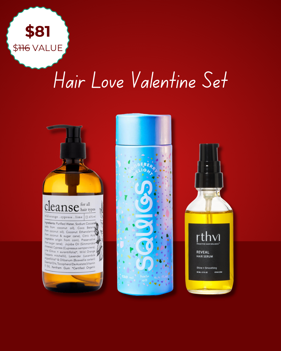 This Valentine’s, focus on the relationship that lasts the longest: you and your hair. The Hair Love Valentine Set is a premium, three-piece ritual crafted to strengthen, soften, and restore your strands from root to tip. Combining Ayurvedic wisdom with modern hair science, this kit takes you from a gentle, purifying wash to a high-shine finish, ensuring your hair feels as loved as you do.